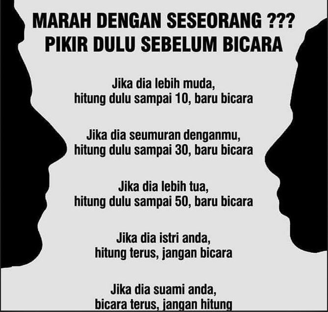 . Pada saat itu meskipun doi marah tapi nyatanya hingga. Tunggu sampai suami tenang. Pada laki-laki yang diam saat marah bukan berarti dengan membentaknya emosinya bisa mereda atau pada tipe meledak-ledak bukan berarti dengan cara membiarkannya bisa meredakan.